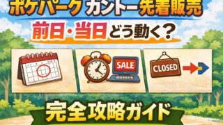 ポケパーク カントー先着販売で「買えない…」を防ぐための前日・当日の行動まとめ。抽選落選後でも間に合う準備・時間帯・注意点を家族連れ向けに解説。
