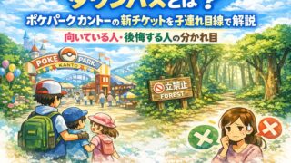 ポケパーク カントーの新チケット「タウンパス」とは?フォレストに入れない注意点や、子連れで向いている家庭・後悔しやすいケースを分かりやすく解説。抽選・先着販売の考え方も紹介します。