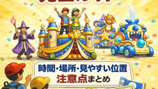 ポケパーク カントーのパレード完全ガイド。ピカブイバブルカーニバルの時間・場所・見やすい位置・整理券の有無・子連れの注意点まで初めてでも分かるように解説します。